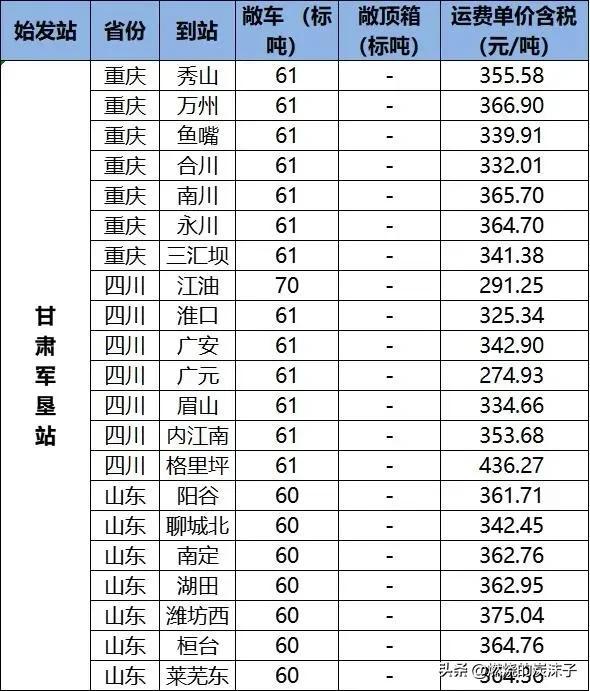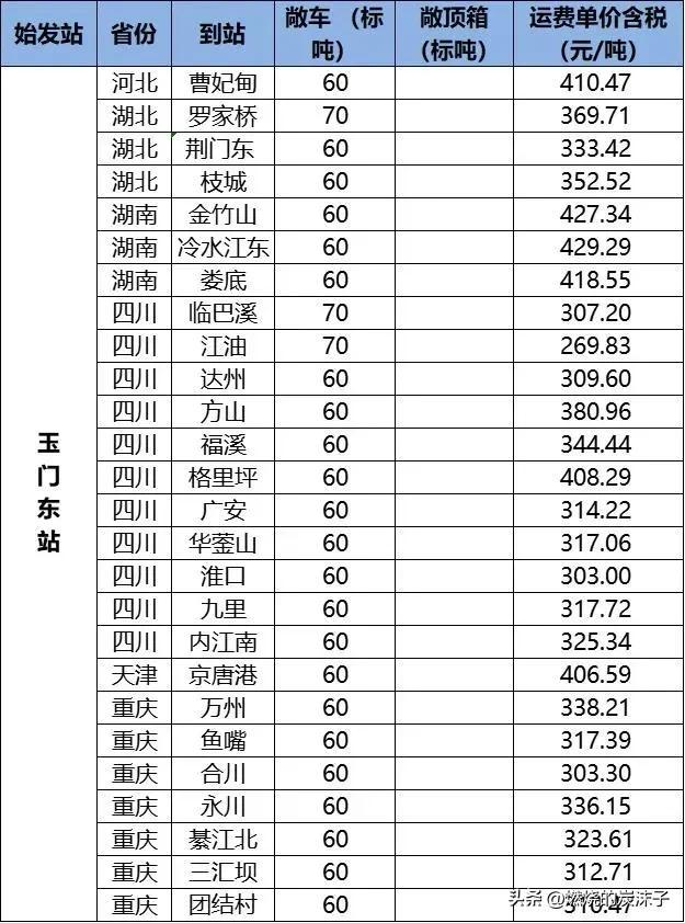 2023年2月甘肃、哈密、吐鲁番、准东等车站发运参考运价