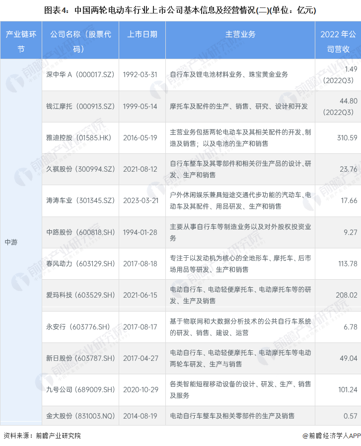 ——原标题:【最全】2023年中国两轮电动车行业上市公司全方位对比(附业务布局汇总、业绩对比、业务规划等)