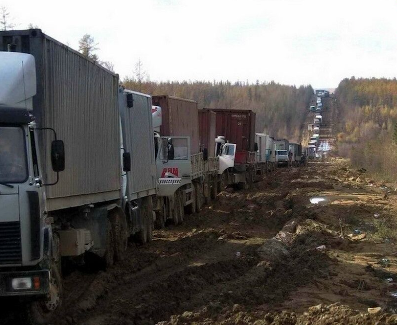 但是!即使卡玛斯、乌拉尔和太托拉等超级卡车再牛,一旦遇上融沉的冻土,依旧是毫无还手之力。