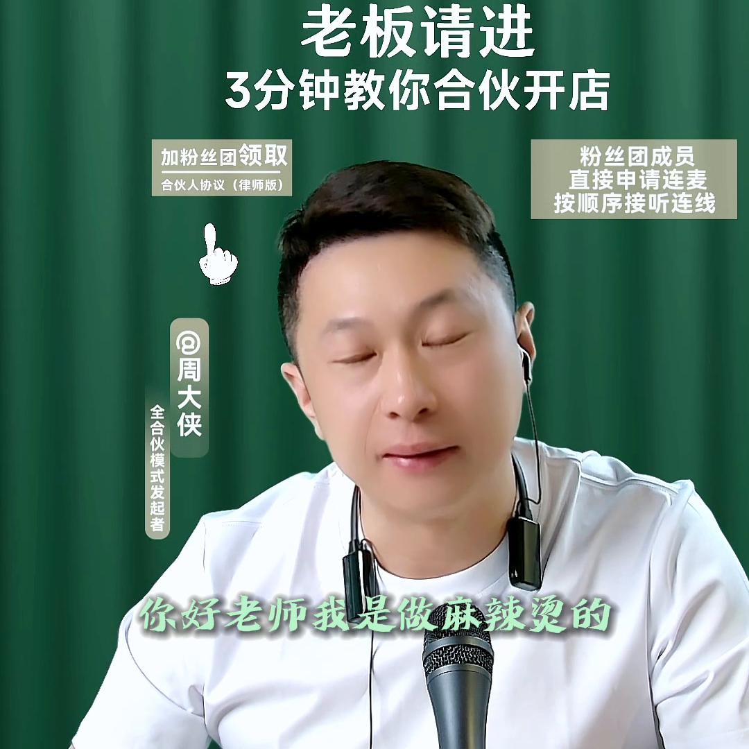 假如说这个店一共投100万,员工投资30%你投资70%,收了钱直接拿走70%,员工拿30%。你这70%比方你投了70万,这70万你回去之后,好嘞员工占70%,你占30%,正常我应该是投了10%,我不得拿到70%的股份吗?对你是拿到100%的钱,你要占的少因为你做连锁店吗?这个店你啥也不用管,完全叫店长去经营行了。你是赚什么钱?你要知道,你做麻辣烫你做供应链的钱,因为供应链你也赚钱,你赚品牌的钱,供应链的钱还是门店经营的钱,所以说你要叫店长占的更多。如果店长占的少他不会拼命给你干的,你如果感觉你占的少,可以用四六的模式也可以。三七四六无所谓,我只是给你举个例子,周老师谢谢你,没事没事,门店合伙问题,关注我就够了。