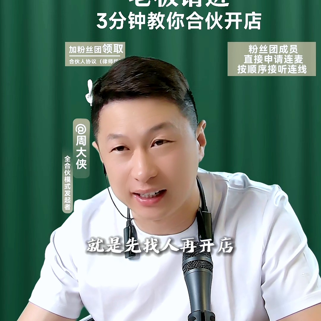 你现在一定要搞联营合伙。那什么叫联营合伙呢?我们先找到店长再去开店。店长投资30%你投资70%,那么没回本之前你回1他回3,回本之后你要30%他要70%,这种叫三七快回本的模型。