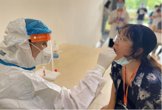 作为公司的综合制剂生产基地,倍特药业双流生产基地拥有13个生产车间。封控管理期间,双流生产基地在每日厂内的核酸检测中,部分员工亲自上岗化身暖心“大白”,为大家扫码发签,让所有员工“足不出厂”完成检测。