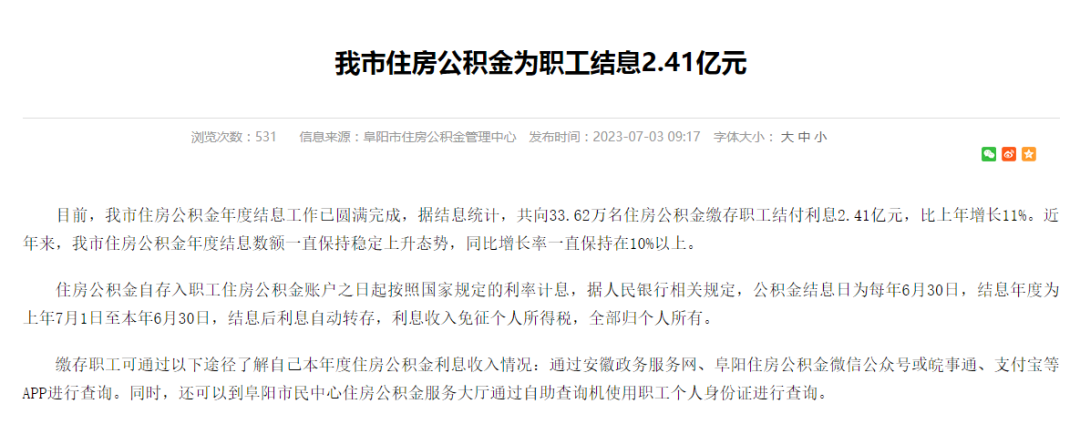 目前,我市住房公积金年度结息工作已圆满完成,据结息统计,共向