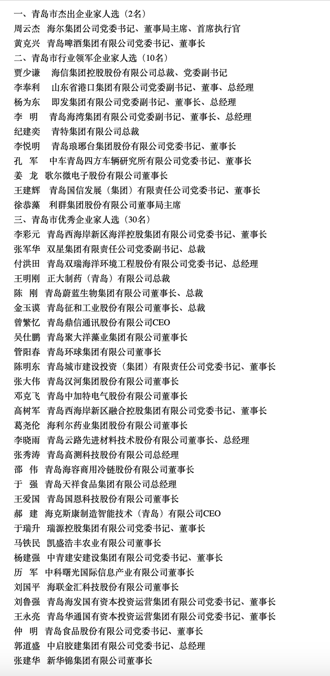 4、2022年度青岛市优秀企业家建议人选出炉,首批42人入围