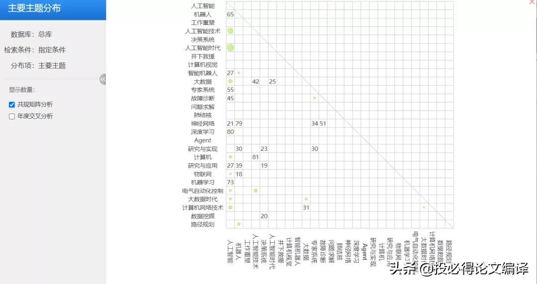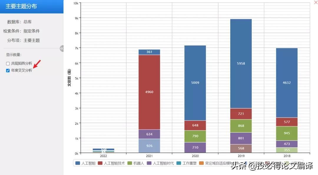 ”可以了解近几年来不同主题的发文量,反映了研究的热点;