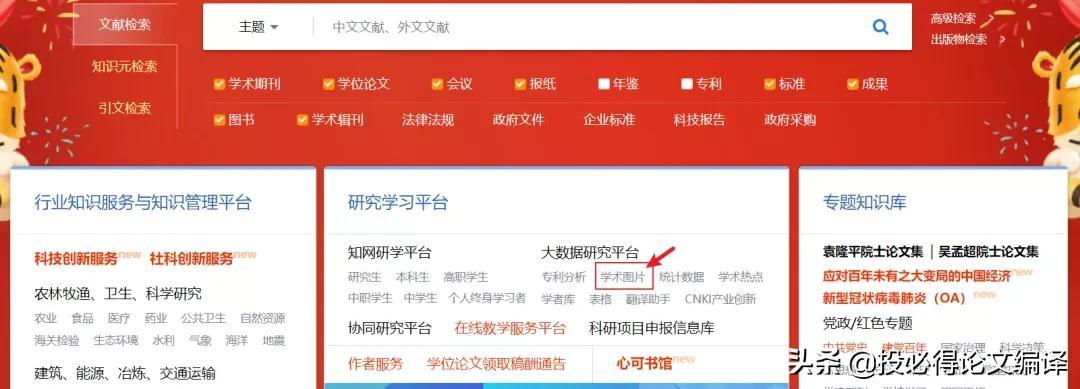 中国知网也有论文图片检索功能,即由图片检索论文。在知网首页找到“