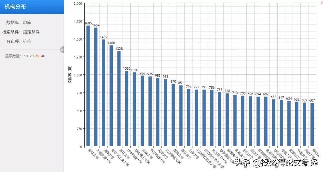 同样的方法,我们可以对机构、发表年度、作者、基金等项进行可视化分析,关注代表性机构、学术大佬、基金等的关注方向,快速掌握当前课题研究现状,更好地进行选题。