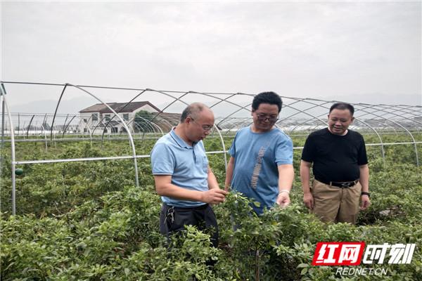 专家在生产基地检查辣椒长势。