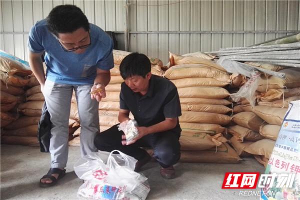专家在农资仓库检查农药等生产资料。